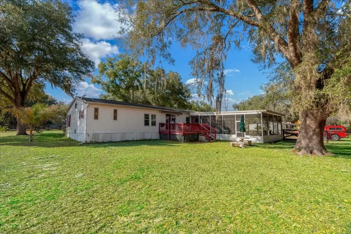 Check out this Amazing Well-maintained 3BR/2BA double-wide mobile home with an open-concept layout with split floor plan. Mostly furnished and situated on a fully fenced 1.17-acre lot with mature oak and fruit trees. Enjoy outdoor living with a front porch, deck off the living room, and a covered, screened-in back patio with hot tub. Property includes multiple storage sheds for workshop and yard equipment, private well and septic, no HOA, and ample space for boat parking, plus 50 Amp outlets for RV parking.
