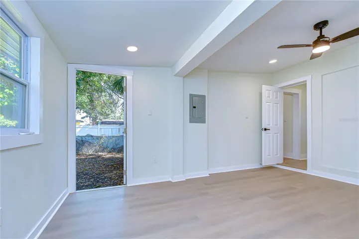Experience refined Florida living in this fully renovated 3-bedroom, 1-bath home offering 1,183 square feet of thoughtfully designed living space with luxury vinyl flooring throughout. A bright, airy living room serves as the heart of the home and flows seamlessly into the stunning kitchen, featuring quartz countertops, a stylish tile backsplash, brand-new appliances, and premium finishes. The completely remodeled bathroom is finished floor to ceiling with designer tile. Two bedrooms provide generous space and natural light, while the third room provides flexibility for a variety of uses. Step outside to a fully fenced, oversized backyard, ideal for entertaining, relaxation, or play, and enjoy your mornings on the large covered front porch, spacious enough for a table and chairs is perfect for coffee or evening unwinding. Major upgrades provide peace of mind, including a new roof, new HVAC system with updated ductwork, new water heater, and new windows. Located in Flood Zone X, this home is ideally positioned just minutes from Downtown St. Petersburg and Central Avenue, offering easy access to upscale dining, boutique shopping, and vibrant entertainment. Nearby lakeside parks, a splash pad, Boyd Hill Nature Preserve, and the Pinellas Trail support an active, outdoor Florida lifestyle. Schedule your private showing today.