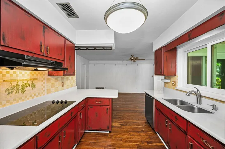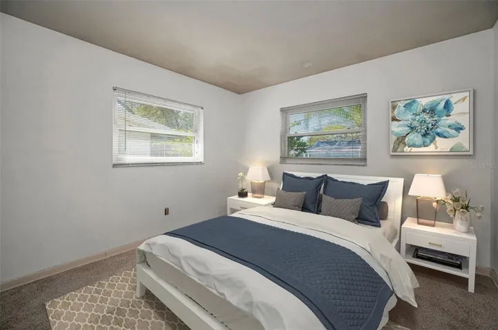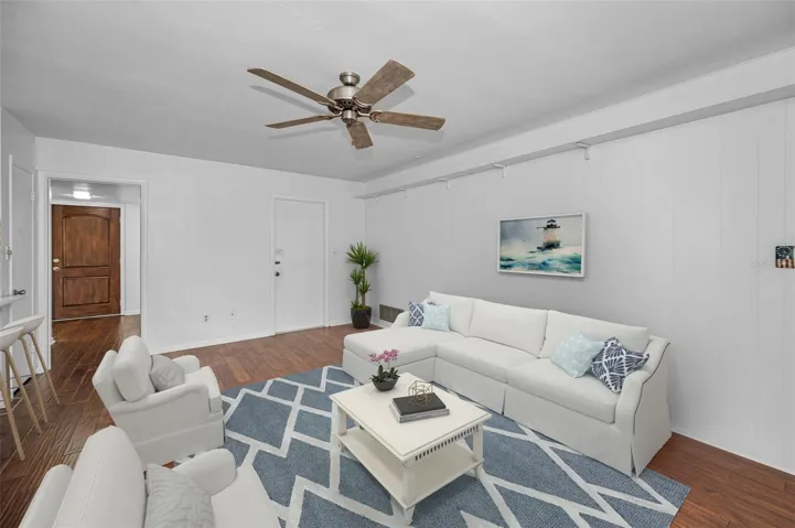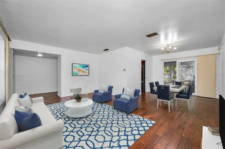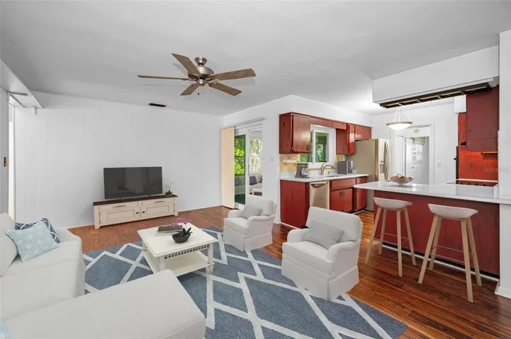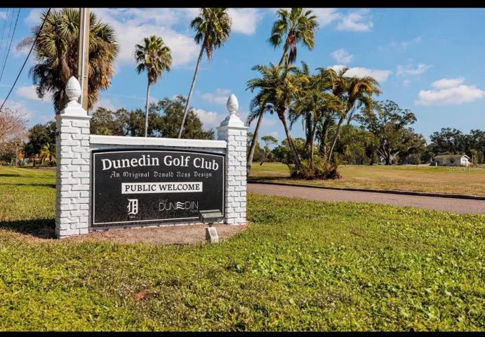 One or more photo(s) has been virtually staged. Fore!! Your Dunedin dream is within range. Grab your golf cart and park it in front of your 4 bedroom, 2 bath home in highly sought after Dunedin. Just beyond the $7 million renovated golf course, this happy home awaits. You can’t pass by and not want to stop at this Fairway Estates property! Tropical landscaping greets you as you enter the double driveway and approach the covered walkway to the front door. Upon entering you’ll be greeted by two separate living areas which allow for endless options as you host guests eager to indulge with you in this Florida lifestyle. The previous owner hit a birdie with the continuous engineered hardwood floors throughout the main living spaces. Natural light flows through with huge double pane windows in the front of the home, providing the perfect amount of sunshine and tropical views. Travel through the connected dining room to find double panel sliding glass doors that take you to the covered lanai and lush get-a-way out back. Natural Florida awaits with a well landscaped backyard perfect for privacy and taking in that Florida sunshine. The kitchen also offers views of the backyard with a pass through window over the sink, stainless steel appliances, granite countertops with undermount sink and an eat in area. Imagine the possibilities in this kitchen! Imagine turning the peninsula into a large island to combine the family room and kitchen, creating one large space for gathering with loved ones. Like a shiny new set of clubs, when you retire home, you have options! The split floor plan offers the privacy of the primary suite on one side and 3 additional bedrooms on the other side. Even if you hit bogeys all day, you’ll find refuge in your spacious primary suite, complete with a relaxing en suite bathroom and walk in closet. 3 spacious guest rooms offer space to relax with new carpet and plenty of windows to welcome that morning sun. The guest bathroom features a dual vanity sink and a soaking tub/shower combo. You’ll be hitting way above your handicap with this one. With updates including: newer A/C (2024), roof (2023), water heater (2019), water service line (2025), updated Square D Power Panel, updated double pane windows and NO FLOOD ZONE! The garage offers plenty of storage for your beach gear, golf cart, and those shiny new clubs you’re going to need. Just a chip shot away are endless sunsets at any of the nearby parks or beaches and of course the famous and beloved, Downtown Dunedin. What could make you happier? Act fast, because this home is an ace in the hole and won’t last long!