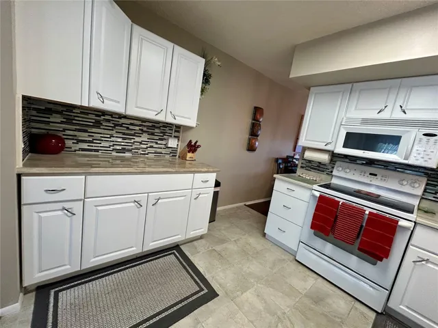 Welcome to this meticulously updated 2 bed, 2 bath, top floor oasis, ideally located just across the street from the West side activity center, where you will have convenient access to one of two heated swimming pools, a jacuzzi, billiard room and more, all within walking distance. Park in your assigned parking spot and step inside, where you will be greeted by beautiful, engineered hardwood flooring and a contemporary paint palette on the walls and trim. The remodeled kitchen features shaker cabinets, quartz countertops and chic ceramic tile backsplash, updated appliances, and ceramic tile flooring. This kitchen is a true delight for any home chef. The bathrooms have been tastefully updated, featuring new tilework, vanities, comfort-height commodes, and modern lighting and faucets, offering a blend of style and functionality. Enjoy the convenience of your own washer and ventless dryer. The water heater was replaced in 2023 and electrical circuit panel replaced in 2017. The AC heater coil and condenser motor were recently replaced as well. This vibrant SS+ community offers an array of amenities designed to enhance your lifestyle. Enjoy exclusive access to two private golf courses, two heated swimming pools, tennis and pickleball courts, and two activity centers. Stay fit with call the remodeled Cardio G , equipped with the latest exercise equipment, or participate in various community activities such as fitness classes,