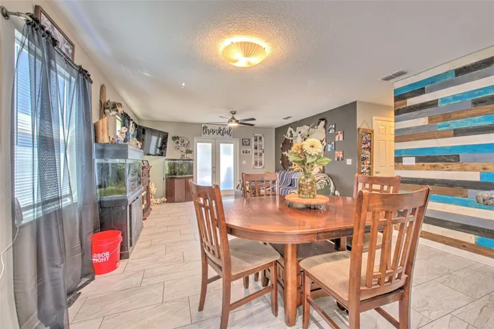 Well maintained and well built 3-bedroom, 2-bath Craftsman-style home with a fully fenced backyard. The kitchen offers granite countertops, stainless steel appliances, and a breakfast bar that opens to the dining and living areas, creating a functional and inviting layout. French doors off the living room lead to a covered lanai, providing a great space for outdoor entertaining or relaxing.