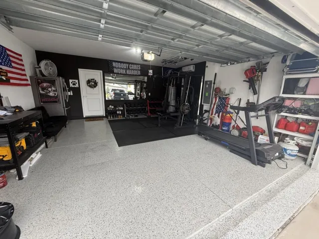 Rounding out the home is a climate-controlled garage with epoxy floors, ideal for a home gym, workshop, or additional flex space.