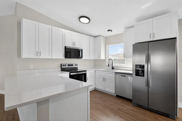 One or more photo(s) has been virtually staged. Welcome home to this beautifully renovated property in Kissimmee! This move-in-ready home features a fresh coat of paint inside and out, creating a bright and modern feel throughout. Enjoy brand-new luxury vinyl plank flooring with updated baseboards in every room. The fully remodeled kitchen is a standout, offering stylish shaker cabinets, sleek quartz countertops, and stainless steel appliances—perfect for everyday living and entertaining. New hardware and modern fixtures throughout the home add a cohesive, updated look. Step outside to the screened-in porch overlooking the backyard, ideal for relaxing or enjoying Florida evenings. Additional highlights include a 2-car attached garage and a large storage shed out back, providing plenty of space for tools, toys, or hobbies. This thoughtfully updated home is ready for its new owners—schedule your showing today!