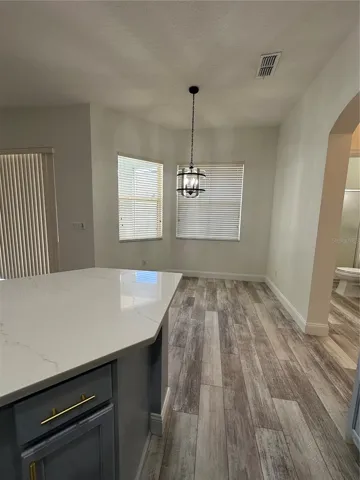 A BEAUTIFUL and well-maintained 4-bedroom, 3-bathroom single-family home is available for a March 4th occupancy date in the desired Fieldstream community! A perfect place to call home! This home features open living spaces, high ceilings, ceiling fans and luxury vinyl throughout! The kitchen features beautiful cabinetry and counter tops, stainless steel appliances, kitchen island, breakfast counter, built-in charger station and eat-in area! The light fixtures in the foyer, dining area and hallways add a special touch to the home along with the various archways. The primary bedroom has plenty of windows, a sliding glass door leading to the back patio and two separate closets! The primary bathroom has two separate vanities, garden tub and shower. There is additional storage in the hallways that can be used for linens or as a pantry if needed. The laundry room features washer and dryer units, wooden shelving, cabinets and a utility sink. The attached 2-car garage has additional shelving and hooks available to you. Enjoy the fully fenced in back yard for added privacy and screened-in back patio. One SMALL dog would be allowed with an additional pet deposit and pet fee. No large dogs or cats. The income requirement is three times the monthly rent combined. No current or past evictions. There is a security system for the home as well. This is a prime location and just minutes away from the 408, Advent Health, Waterford Lakes, UCF, many restaurants and shopping. Contact our office today to view this gorgeous home! It is a MUST see!