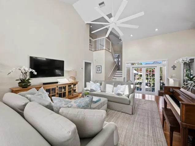 Recent improvements enhance both performance and comfort: updated kitchen appliances, full wind protection through a combination of impact glass and shutters, raised-seam metal roof, new landscaping, foamed attic, whole-house dehumidifier, and an organized garage system—useful for bikes, beach gear, and seasonal storage.