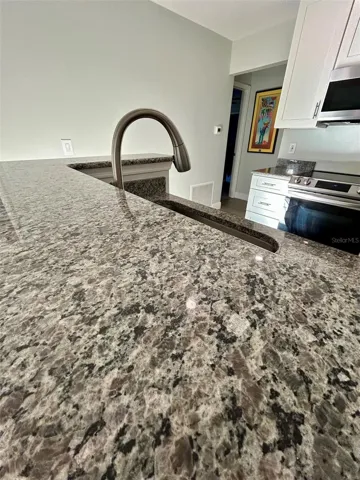 Beautifully updated 3-bedroom, 2-bath ground-floor corner condo offering 1,136 square feet of light-filled living space. This plush residence features upgraded tile flooring, high-end carpeting, and elegant stone countertops in the kitchen and both bathrooms. Thoughtfully remodeled in phases in 2021 and 2023, with major improvements including new flooring, new windows (2021), a new A/C system, and a new hot water heater. The spacious living room is anchored by a cozy fireplace and surrounded by numerous windows that flood the home with natural light. The kitchen includes all appliances and a convenient stackable washer and dryer tucked into a closet. All LG appliances convey, including stainless steel range, microwave, refrigerator, dishwasher and disposal. Corner location provides added privacy and brightness. Move-in ready and impeccably maintained.