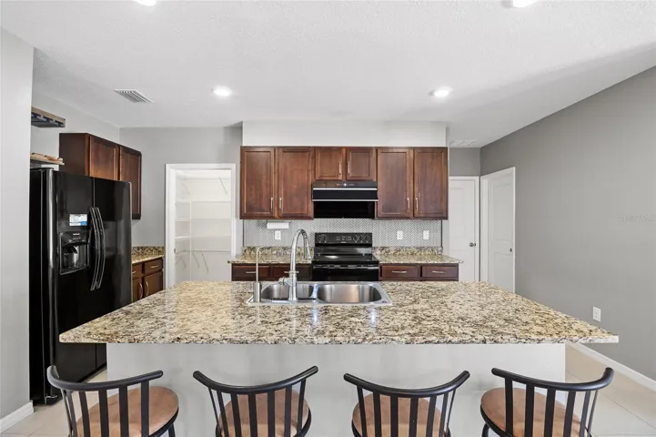 One or more photo(s) has been virtually staged. Beautifully maintained 5-bedroom, 3-bath two-story home located in the desirable Union Park community of Wesley Chapel. This newer home features a bright, open layout with wood-look flooring on the main level. The upgraded kitchen includes tile backsplash, updated fixtures, cabinet hardware, accent lighting, and modern dining area lighting. Ceiling fans throughout and select window treatments add comfort and style.