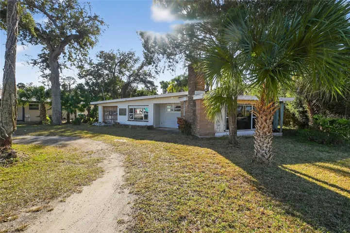 Investment opportunity, huge lot, over half an acre! Build your dream home on this .55 acre lot, or restore to the Mid-Century Florida home—just across from the Intracoastal Waterway. This truly original period home needs work but retains some of its authentic character, parquet wood floors to heart pine walls and ceilings, some original doors, retro glass blocks and a stone fireplace in the living space, Set on an expansive 100 x 250 lot, offering endless potential for outdoor living or future improvements and additions. Build up and have a fabulous river view! Other features include split bedrooms, an oversized one-car garage. Roof is three years old. Offered AS IS— All MLS information is intended to be accurate and reliable but can not be guaranteed.