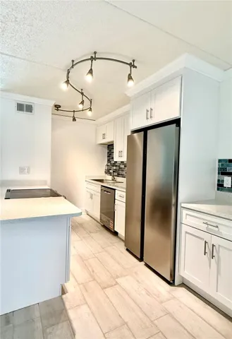 Inside, the space feels bright and thoughtfully designed, featuring a beautifully finished kitchen with stainless-steel appliances, quartz-style counters, and elegant cabinetry perfect for relaxed coastal living.