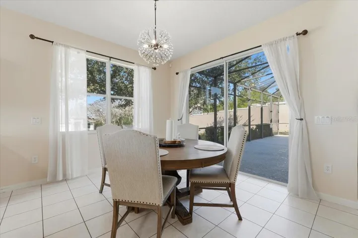 This bright and airy home sits on a corner lot in Calabay Parc at Tower Lake. With five bedrooms, four full baths and two half baths, it offers an open main-floor living space finished in ceramic tile and a chef’s kitchen with granite/stone counters and stainless appliances. The owner’s suite opens directly onto a screened lanai with heated pool and spa overlooking Tower Lake. Upstairs are four additional bedrooms and a versatile bonus room.