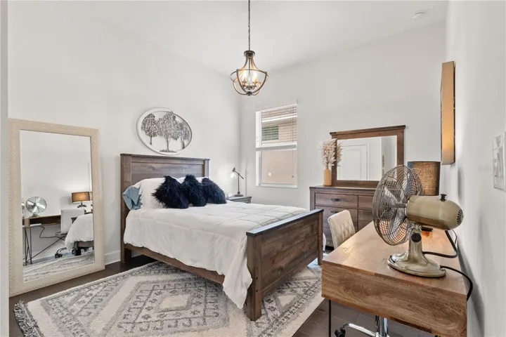 Inside, you’ll be welcomed by engineered hardwood flooring throughout and soaring 10-foot ceilings that create an open, airy feel. A versatile front den or office easily doubles as a guest suite for visiting family or friends. The expansive great room opens through sliding glass doors to a shaded, screened-in lanai, the perfect place to relax while enjoying peaceful lakefront views.