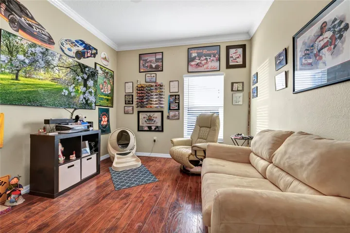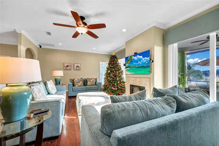 Lakefront living with a resort-style screened pool & spa—no HOA! This impeccably maintained, single-story home shines with big-ticket upgrades: newer roof & gutters, resurfaced pool with upgraded equipment plus salt system, newer A/C, tankless water heater, and premium Pella windows & sliding doors for energy efficiency and quiet. Inside, an open great room features crown molding, refreshed recessed lighting, a surround-sound system, and a fireplace facelift. The remodeled kitchen offers quartz/solid-surface counters, upgraded stainless appliances, a breakfast bar, and pendant lighting—opening to casual dining and the lanai. Split bedroom layout with a refreshed primary suite and remodeled spa-style bath. Newer carpet in bedrooms and newer laminate/wood flooring in main areas. Step outside to covered seating, ample deck space, and tranquil lake views—outdoor living ideal for the Florida lifestyle. Move-in ready, beautifully updated, and perfectly positioned for everyday indoor–outdoor enjoyment.