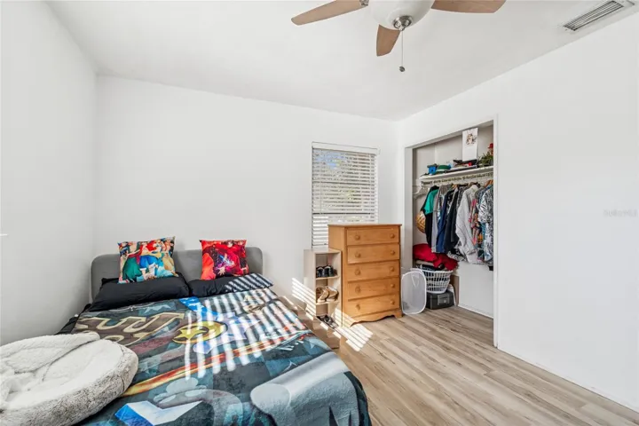 Welcome to this delightfully expanded home in the northern, non-flood, Stetson area of Gulfport. Mature Mango and Meyer Lemon trees greet you before reaching the wrap around front porch with its exposed beams and southerly views. The oversized living room features hand-scraped Hickory solid wood flooring. All appliances remain in the kitchen which boasts ample counter space, breakfast bar and adjoining laundry room. Adjacent is the dining area with backyard access. The master bedroom is cavernous with walk-in closet, ensuite bathroom and more hand-scraped Hickory solid wood flooring. Don’t miss the granite topped double vanity and oversized walk-in shower! Two more bedrooms and a hall bathroom round out the lovely home. The cozy backyard is complete with outdoor storage shed and private vinyl fencing. An additional storage room can be found in the carport which includes plumbing for an additional bath if desired.