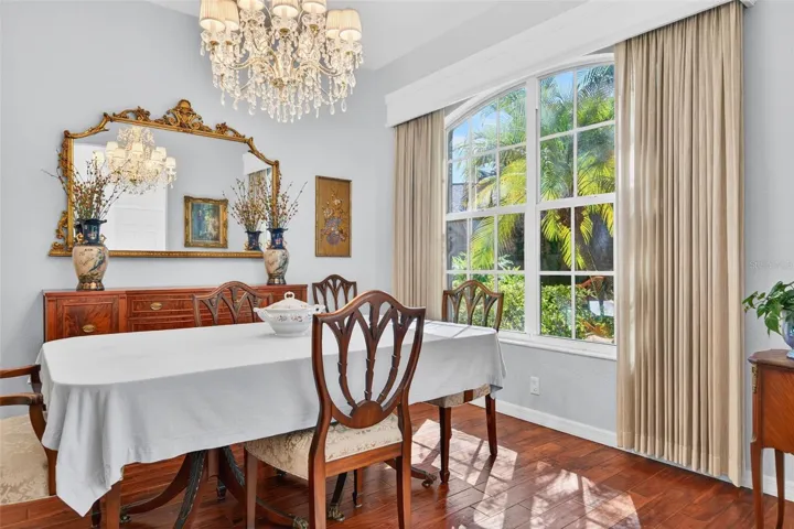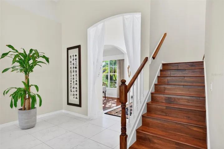 Welcome to this beautifully updated 4-bedroom residence in Palm Aire Country Club, one of the community’s newer and more sought-after neighborhoods. Tucked away on a quiet, wooded street of just 20 homes, this professionally curated property offers exceptional privacy and a serene, lush setting, mere steps from the 55-acre Conservatory Park and its scenic walking trails. This impeccably maintained two-story home is fully move-in ready and showcases a renovated kitchen and recently completed flooring throughout along with a roof (2021), and an air-conditioning system (2024). The grand living room is defined by soaring 22-foot ceilings with tons of natural light and a decorative fireplace, while the kitchen’s signature aquarium window frames tranquil wooded views. Elegant white tile flows through the main living spaces, complemented by rich hardwood flooring in the bedrooms. The primary suite, privately positioned on the main level, features double walk-in closets, a 10’ tray ceiling, direct access to the screened lanai, and a recently renovated spa-inspired ensuite bath with dual vanities, soaking tub, and separate shower. An additional bedroom and half bath, along with a laundry room featuring a sink, complete the first floor. Upstairs, two private bedrooms and a full bath provide ideal accommodations for guests, family or an office space. Low annual HOA fees and no CDD fees. Located within Palm Aire Country Club, where optional membership is available, offering an exceptional lineup of amenities including two 18-hole championship golf courses, a fitness center, junior Olympic-size heated pool, tennis and pickleball courts, and an elegant clubhouse with dining. Ideally situated for both lifestyle and convenience—just minutes from UTC Mall, Whole Foods, Trader Joe’s, Sarasota-Bradenton International Airport, and the University Parkway shopping and dining corridor. Top-rated hospitals, Downtown Sarasota, and the renowned beaches of Siesta Key and Lido Key are all in close proximity, with quick access to I-75. This exceptional residence offers a rare blend of privacy, elegance, and effortless Florida living.