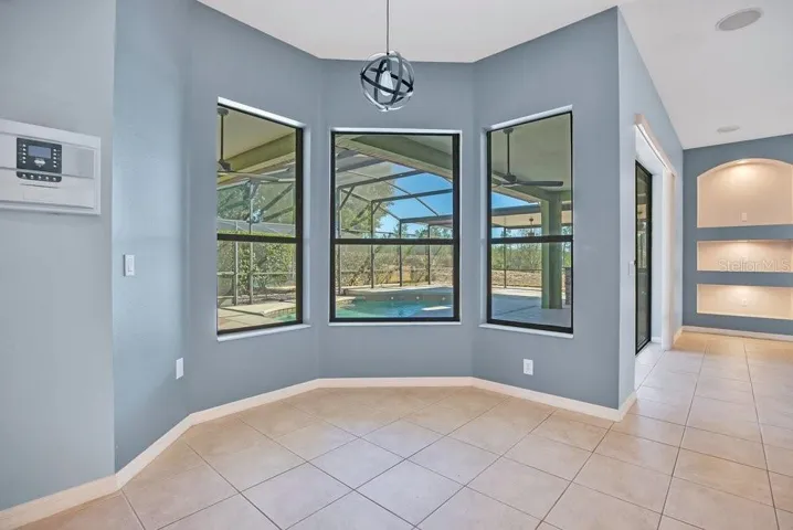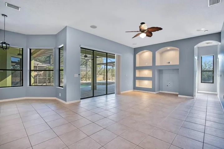 Home features an awesome primary bedroom suite with direct access to screened in pool. The pool is also accessible from the