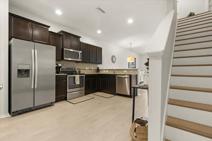 Beautifully maintained 2 bed, 2.5 bath townhome with a spacious bonus room in the gated community of Magnolia Park. This light and airy home features serene lake views and upgraded white oak vinyl flooring throughout. The open-concept kitchen, dining, and living areas offer granite countertops, dark wood cabinetry, stainless steel appliances, and a new dishwasher. Outdoor living has been enhanced with an extended lanai and a new screened enclosure, providing a peaceful space to enjoy the water views year-round. Upstairs includes a large bonus room ideal for a home office or flex space, two bedrooms, two baths, and a laundry closet. The primary suite offers lake views, dual closets, and an en suite bath with dual granite vanities. This home has been thoughtfully updated and meticulously cared for, offering true move-in-ready appeal. Community amenities include multiple pools, playgrounds, basketball court & splash pad. HOA covers water, sewer, trash, lawn care, and amenities. Convenient access to I-75 and the Crosstown Expressway. Move-in ready, low-maintenance townhome living in Riverview with conservation and waterfront views.