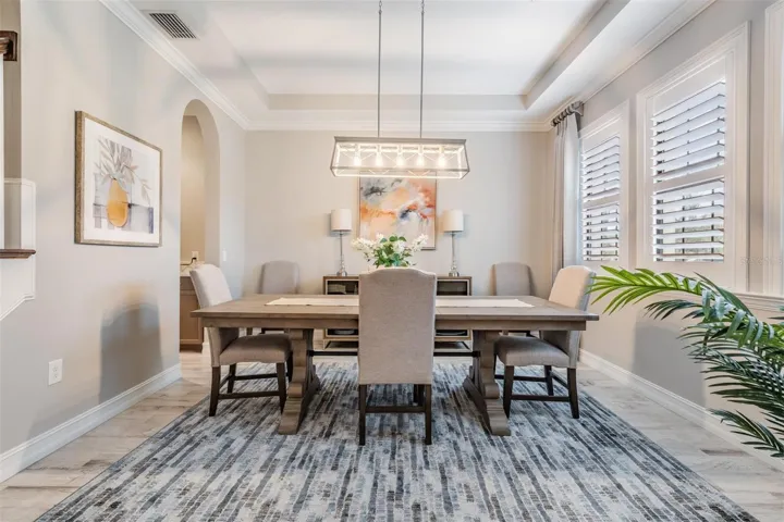 Luxury, sophistication, and resort-style living are masterfully combined in this exceptional estate residence within the prestigious, gated community of Estancia in Wesley Chapel. Designed and built by Standard Pacific, this expansive two-story home offers five bedrooms and four bathrooms, delivering an elegant balance of architectural presence and functional design suited for both refined everyday living and upscale entertaining. A professionally integrated smart home system provides seamless control of lighting, climate, security, and audio/video throughout the residence, enhancing both comfort and convenience. Multiple living and entertainment spaces offer versatility for hosting, relaxing, or multi-generational living, all unified by thoughtful flow and upscale finishes. The heart of the home is the chef’s kitchen, beautifully appointed with an oversized island, Wolf appliances, soft-close cabinetry, under-cabinet lighting, wine refrigerator, and premium finishes—effortlessly opening to the main living area for a truly connected entertaining experience. Tile flooring grounds the main level with timeless elegance, while newer carpet adds warmth and comfort to the upper level. The primary suite is a private sanctuary, offering a spa-inspired bath with a freestanding soaking tub, custom closet system, and refined finishes designed for relaxation and retreat. Every detail reflects quality craftsmanship and intentional design. Significant upgrades elevate the home further, including two new HVAC systems installed in 2025, custom Lutron motorized shades, plantation shutters, smart lighting, a central vacuum system, flat tile roof, and a paver driveway—underscoring both luxury and long-term value. Outdoor living is equally exceptional, featuring a private, heated saltwater pool and spa framed by covered and screened entertaining spaces, creating a serene and private backdrop for year-round enjoyment. Whether hosting or unwinding, this outdoor retreat offers both elegance and functionality. Residents of Estancia enjoy exclusive access to resort-style amenities including a grand clubhouse, pool, fitness center, tennis and basketball courts, scenic nature trails, and dog parks. Ideally positioned near Wiregrass Mall, Tampa Premium Outlets, top medical facilities, dining, and major commuter routes, this residence delivers an unparalleled blend of luxury, lifestyle, and location. A truly rare opportunity to own a move-in-ready estate home in one of Wesley Chapel’s most distinguished gated communities.