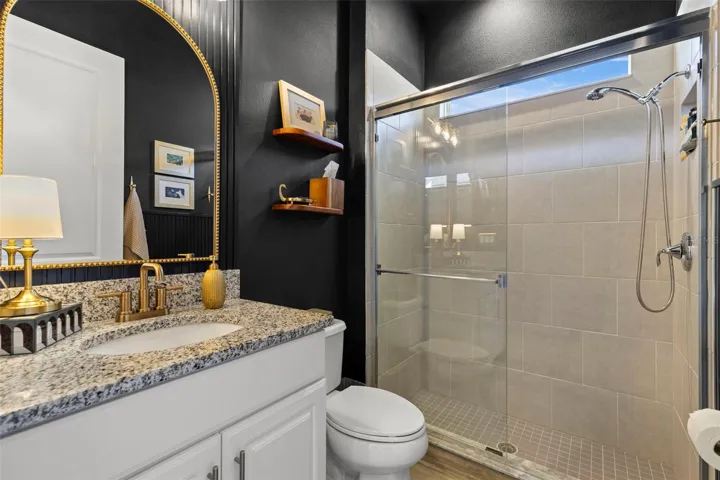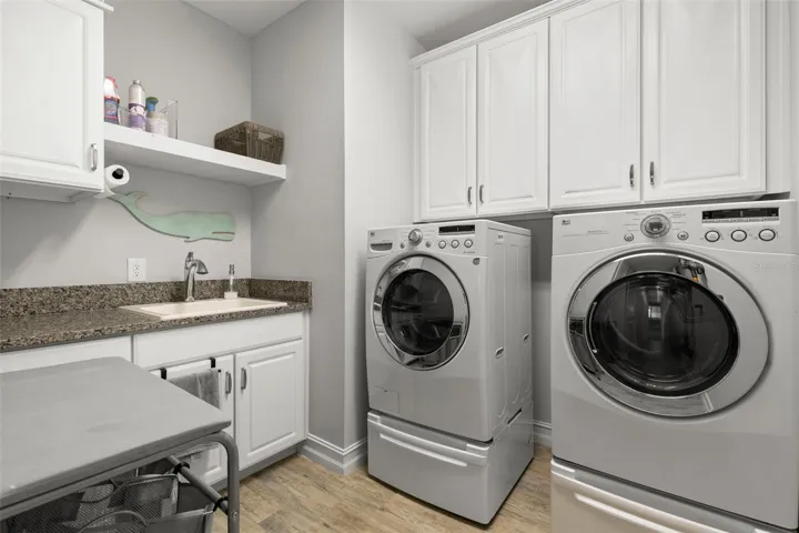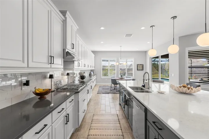 We’re pleased to introduce this exceptional Lutz residence in one of Tampa Bay’s most desirable gated communities — prized for A-rated Steinbrenner HS, an outstanding lifestyle, and convenient commute times. Designed for effortless entertaining & everyday comfort, the home offers expansive living spaces, abundant natural light, and seamless indoor-outdoor flow that elevates daily living. Arrival begins w/ a 3-lane paver, a 3 car garage & a driveway accommodating up to 6 vehicles. Manicured walkway leads to a lovely landscaped entry & a striking triple-arch portico, setting a refined architectural tone. A leaded glass front door opens to a stately foyer, complemented by a front-facing private office – ideal for remote work while maintaining privacy. Entry from the garage reveals a drop zone, w/ direct access to the laundry room. An elegant formal dining room introduces the crisp four-inch white plantation shutters which adorn every window. Navy saturated walls pair beautifully w/ gold light fixtures. Nearby, a butler’s pantry features quartz counters, tiled backsplash, 2 beverage chillers, a morning bar & oversized walk-in pantry. Wood-look tile connects all of the ground floor living spaces, creating continuity w/ thoughtful separation. The home unfolds into an open-concept kitchen & stately family room, anchored by expansive glass sliders that flood the interior w/ natural light & draw you toward the resort-style pool area. If the home has a heart, this is it — the kitchen showcases white perimeter cabinetry paired w/ sleek gray quartz counters which frame a dramatic oversize island featuring a gray base & luminous white quartz surface as well as exceptional storage. The family room features a custom floor-to-ceiling entertainment wall & tray ceilings, flowing seamlessly into the screened outdoor living area — expanding usable living space beyond 5,000 sqft. Nearby, a ground-floor guest bedroom (currently a home gym) & full pool bath adds flexibility for guests. Step outside to a 5-star resort-style retreat added in 2023, featuring an oversized covered lanai, outdoor kitchen w/ gas-plumbed grill, fridge, sink & storage, a panoramic screen enclosure, custom pool w/ sun shelf, bubbler, color-changing lights, heater & premium pump system. Upstairs, newly installed solid wood floors lead to a large bonus room. The three 2nd level bedrooms are arranged in a triple-split layout, each w/ an ensuite bathroom. The primary suite is a true sanctuary, offering tray ceilings, new high-end carpet w/ Tempur-Pedic padding, dual custom closets, a private office nook & a spa-inspired bath w/ white quartz, soft gold fixtures, oversized shower & soaking tub. The home benefits from nearly $200,000 in recent upgrades, reflecting thoughtful investment in both lifestyle & long-term value. Additional enhancements include a new 2nd-floor A/C (2024); whole-house water filtration; solid hardwood flooring upstairs; updated West Elm lighting; new ceiling fans in key living areas & lanai; redesigned front & rear landscaping; black aluminum fencing enclosing the yard; and a full interior & exterior repaint completed in Jan 2026. Located in Promenade at Lake Park, residents enjoy proximity to the Veterans Expressway, dining, retail & the 450-acre Lake Park offering trails, recreation & outdoor activities. Airport (18 min), Publix, St. Joe’s Hospital & LA Fitness(4 min). A home of this caliber deserves to be experienced in person. Schedule your private showing today.