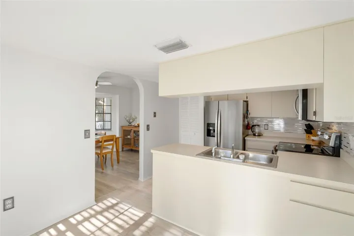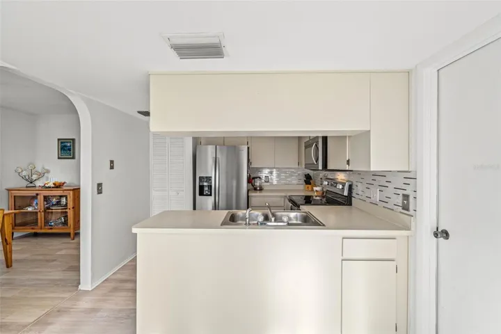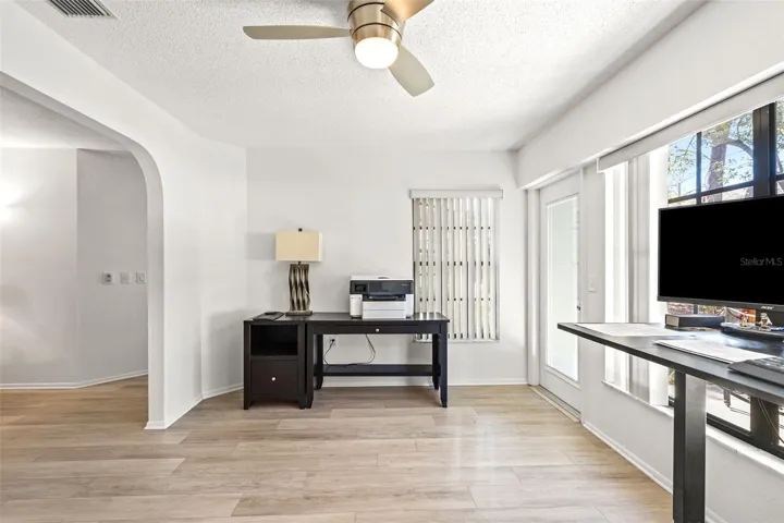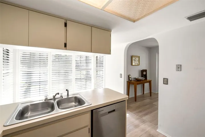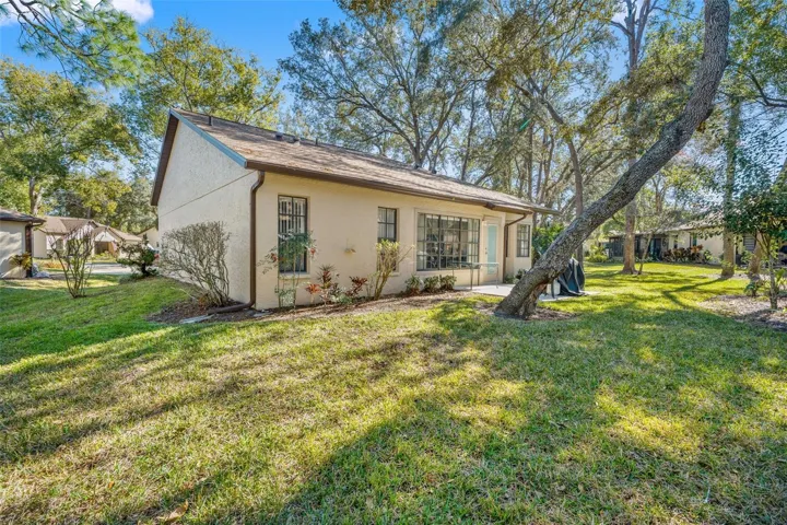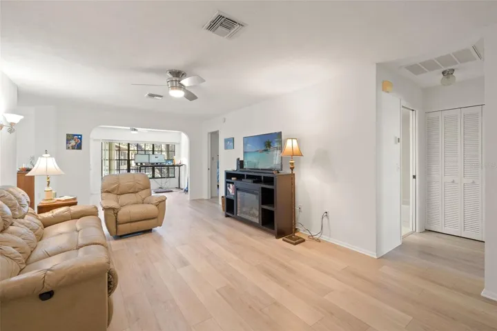 Desirable stand-alone maintained villa located in a private cul-de-sac within award-winning Timber Pines. A welcoming screened front porch and double-door entry lead into a light and bright living room and dining room combination featuring an open-concept design with vinyl flooring throughout. Popcorn ceilings have been removed, enhancing the home’s clean, updated feel. The kitchen offers newer appliances, plantation shutters, a pantry, and a dine-in kitchen nook—perfect for enjoying views of the outdoors. The spacious guest bedroom is adjacent to a full bath with tub/shower combination, while the primary suite includes a private bath with walk-in shower. An extended driveway provides ample guest parking. Outdoor living is easy with a rear concrete slab, ideal for grilling. This well-maintained village features its own geothermal pool and pavilion and is one of the few villages in Timber Pines that allows two dogs. Reside in one of Florida’s premier active adult communities with access to four golf courses, tennis and pickleball courts, clubhouse, fitness center, pools, full-service restaurant, Dog park, 24 hour security, gated and guarded, Performing Arts Center, Resident Activity Center, 2 Geothermal Pools, Billiards Center, Wood Shop, Arts and Crafts room, and over 100 social clubs,so many Activities!! Spectrum Cable TV, 2 Boxes, and highest speed internet included in HOA. ?? Don’t miss your chance to make this home your own in Timber Pines—where comfort meets community. Schedule your private tour today!