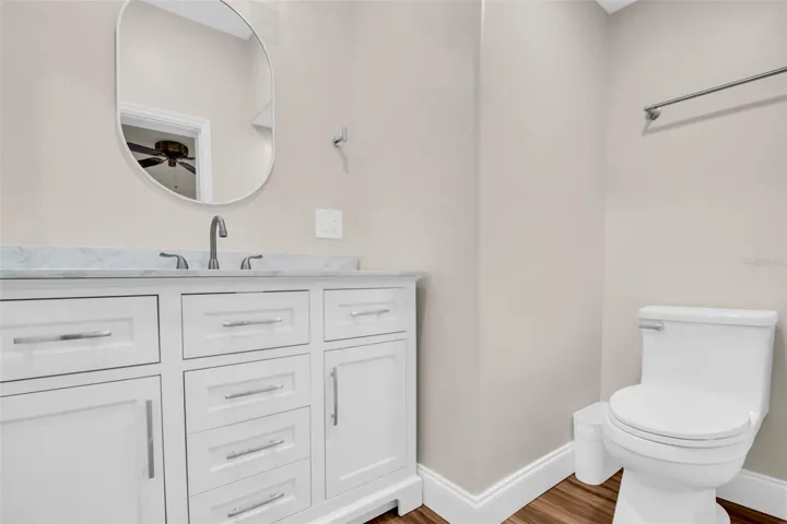 The outdoor experience is anchored by an expansive waterfront deck—your front-row seat to spectacular Florida sunsets—and an inviting lanai surrounded by lush, tropical vegetation for a true island feel. Inside, the open and airy split floor plan features a theater-style living room and a spacious family room. The chef-inspired kitchen boasts solid wood cabinetry and sleek quartz countertops.