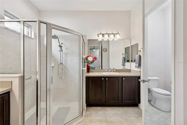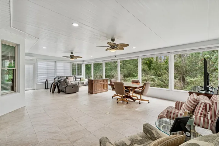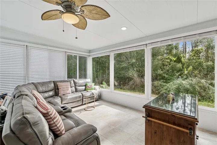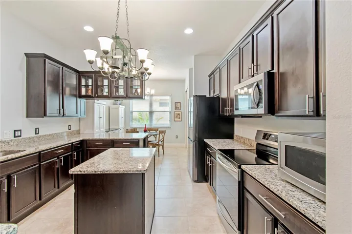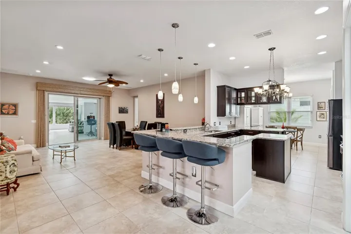 Stunning 3-bedroom, 3-bath Cannes model featuring a saltwater, SOLAR-HEATED SPOOL and a dedicated GOLF CART GARAGE. This exceptional home offers an OPEN-CONCEPT floor plan with 20-inch CERAMIC TILE throughout (NO CARPETS) plus a standout HEATED and COOLED FOUR-SEASON room providing an additional 733 square feet of living space, perfect for entertaining or relaxing year-round. As an added bonus this home offers the exceptional advantage of an ASSUMABLE MTGE at 2.78%, providing significant long-term savings for qualified buyers. A SOLAR TUBE enhances the home with abundant natural light throughout. The kitchen boasts GRANITE countertops, stainless steel appliances, 42-inch cabinetry with convenient PULL-OUT LOWER SHELVES, a breakfast bar, and an adjacent dining area, all opening seamlessly to the spacious great room. The den features elegant French door entry and offers flexible use as a media room, home office, or craft space. PRIMARY SUITE One is your very own private retreat, featuring a convenient door that opens directly to the glass-enclosed spool for effortless indoor-outdoor relaxation. The spacious ENSUITE BATH is beautifully appointed with a WALK-IN SHOWER, split vanities, a linen closet, and two generous closets, both enhanced with CUSTOM BUILT INS for extra storage and organization. Primary Suite Two, currently used as a home theatre, includes an attached ensuite bath boasting a SOAKING TUB, walk-in shower, split vanities, a private commode, and a linen closet—ideal for guests or multigenerational living. An additional third bedroom is located at the front of the home with an adjacent full bath, providing comfort and privacy for guests. Unwind in every season with an IN-GROUND GUNITE SALTWATER spool, set inside a stunning glass enclosure and kept comfortable YEAR-ROUND by a dedicated MINI-SPLIT system. Additional features include DOUBLE-PANE WINDOWS throughout the entire home and a PAID-IN-FULL SOLAR system, providing enhanced ENERGY EFFICIENCY and long-term savings. The HVAC system was replaced in 2019, and a whole-house air purification system was added to the air handler in 2021, enhancing comfort and indoor air quality. The garage features durable EPOXY FLOORING, a MOTORIZED OVERHEAD STORAGE LIFT, and a steel cabinet storage system. Additional upgrades include 8-foot interior doors, KINETICO WATER SOFTENER system (July 2025), upgraded lighting and ceiling fans, and PULL-DOWN ATTIC STAIRS for convenience. This exceptional, move-in-ready home invites you to experience elevated resort-style living. Schedule your private showing today and indulge in the unparalleled lifestyle and amenities this premier 55+ community has to offer. The HOA: – maintains the LANDSCAPING & IRRIGATION systems in the common areas as well as at individual homesites – maintains the roads throughout the community – PROVIDES SECURITY with gate guards and mobile patrols including the Polk County Sheriff – allows AUTOMATED GATE ACCESS for residents via license plate readers – provides residents with Fiber Optic Internet & TV service.***Poinciana Lakes Plaza is a MAJOR NEW SHOPPING CENTER directly across from the Solivita Main Gate. It features Sprouts Grocery, TJ MAXX, Ross, Burlington, Rack Room Shoes, 5 Below, Ulta, Outback, First Watch, 5 Guys, Panda Express, Bojangles, Jersey Mike’s Subs, 5 Guys, Burrito Bar, Cold Stone Creamery, Urgent Care, Dentist, America’s Best Eyeglasses, Crunch Fitness, Hair Cuttery, Petco, TD Bank, PLUS MORE TO COME.***