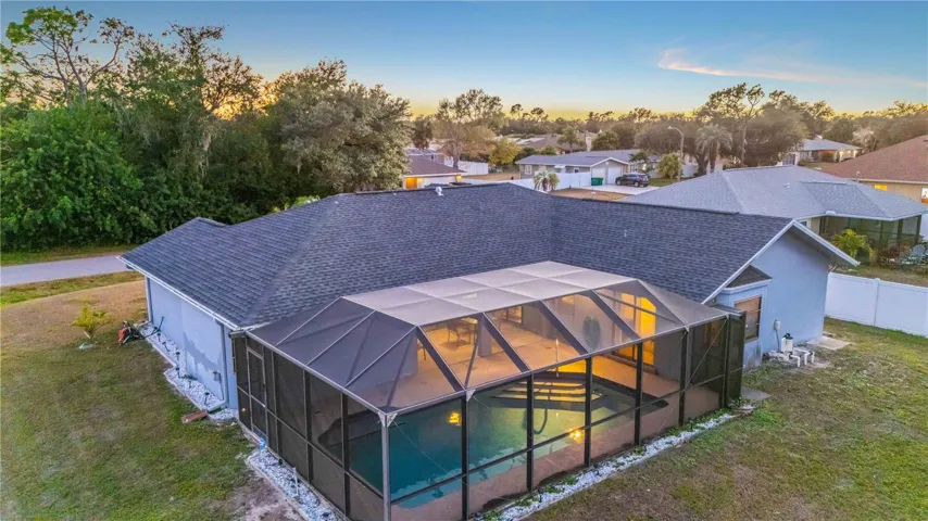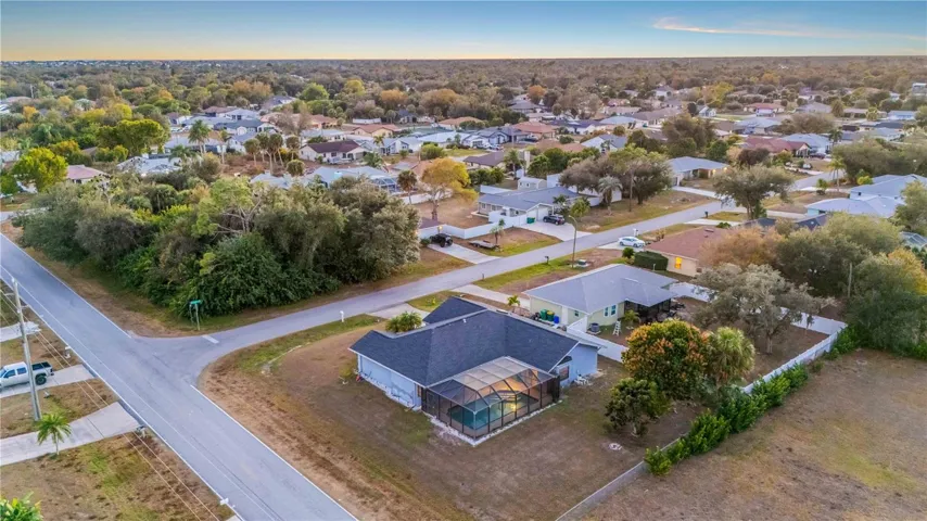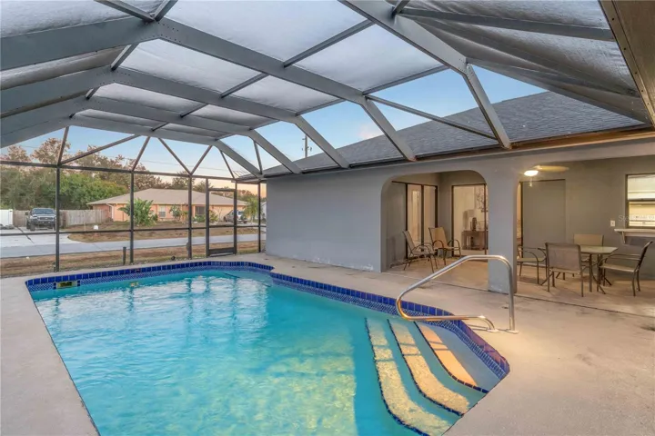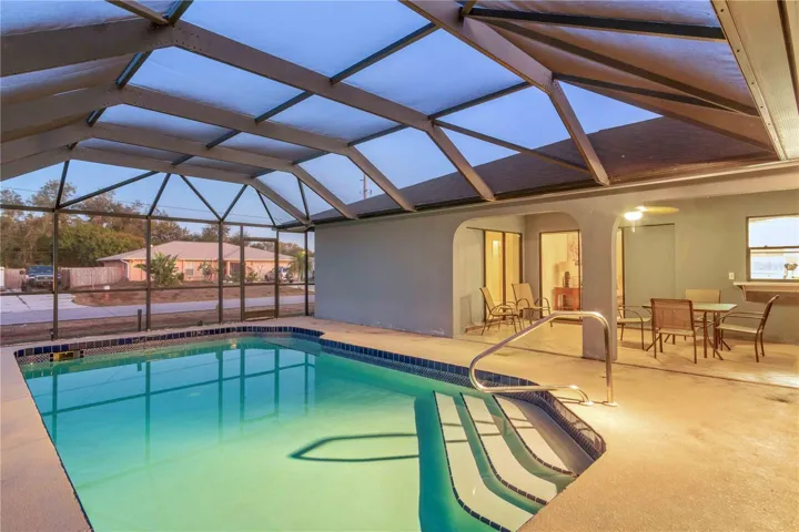 Corner-lot pool home in a quiet, no?n-HOA neighborhood! This well-maintained 3-bedroom, 2-bath, 2-car garage home offers nearly 1,800 sq ft of living space plus a private screened lanai and pool — perfect for Florida living. No deed restrictions, no flood zone, and no carpet anywhere.? With just a little cosmetic updating, this home has the potential to truly shine and become a standout.? Inside, vaulted ceilings and pocketing sliding glass doors in both the living and family rooms create a bright, open feel while framing beautiful pool and backyard views. The kitchen features a breakfast bar, pass-through window to the lanai, and easy flow between the family room, living room, and formal dining area — ideal for entertaining.? The split floor plan provides privacy with a spacious primary suite offering direct pool access, dual walk-in closets, and an en-suite bath with dual sinks and a walk-in shower. Both guest bedrooms also include walk-in closets, and one has sliding doors to the pool. The guest bath doubles as a pool bath with exterior access.? Enjoy relaxing or entertaining on the screened lanai with ceiling fan overlooking the pool and backyard. Major updates include a new roof (2021) and hot water heater (2023).? Conveniently located near shopping, dining, the Braves and Rays stadiums, public boat launches, and Gulf beaches. This move-in-ready pool home offers comfort, flexibility, and a prime Florida lifestyle — schedule your private showing today!