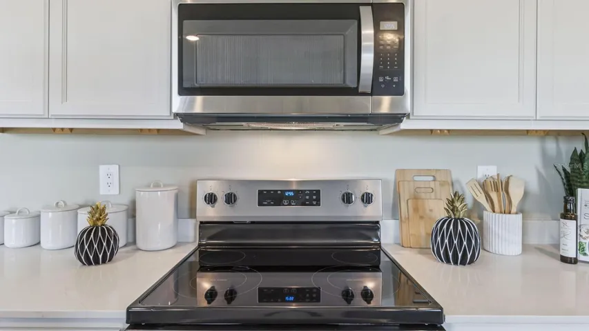 The chef’s kitchen is a true highlight, boasting granite countertops, sleek stainless steel appliances, and an oversized island with a breakfast bar. Whether you’re preparing a casual meal or hosting a formal dinner, this kitchen is well-equipped to meet your culinary needs.