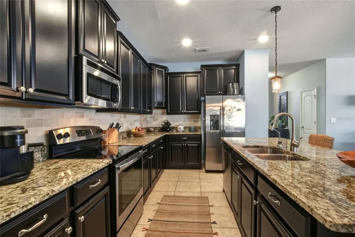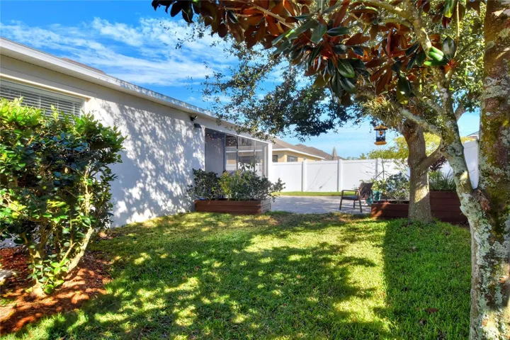 Ballentrae is a quaint community offering amenities such as a community pool and playground. This 4-bedroom, 3-full-bath home features laminate wood flooring throughout the main living areas and a bright, open layout filled with lots of natural light. The secondary bedrooms and full bath are located at the front of the home, offering privacy from the main living areas. A guest ensuite situated in the middle of the home provides an ideal layout for visitors or multigenerational living. The primary suite, tucked away for added privacy, features a dual-sink vanity, garden bath, and private water closet. The kitchen showcases 42″ staggered cabinetry with trim detail, a pantry, and opens seamlessly to the dining and family rooms, making it perfect for everyday living and entertaining. Step outside to a good-sized, fully fenced backyard with a screened lanai, extended pavered patio, and planting boxes—ideal for relaxing or outdoor gatherings. Call today for your private showing!