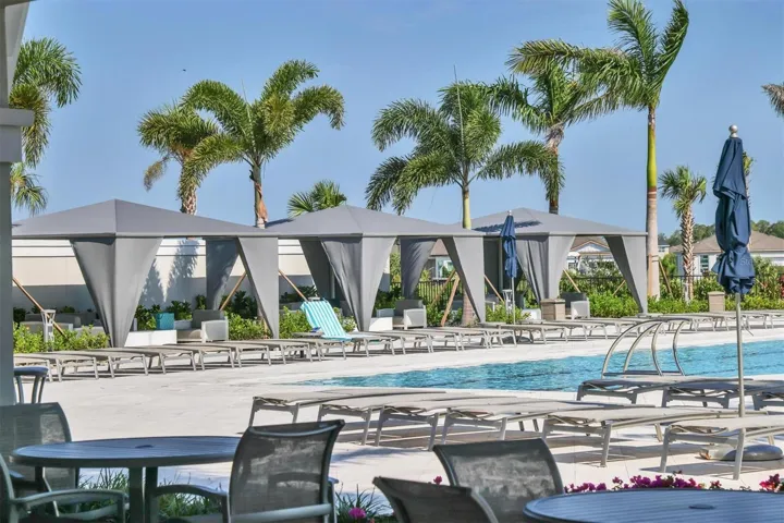 It’s a cottage for lovers of blue, Bocce, Pickle ball and Tennis in the very active sports minded community of Del Webb. Community gardens, two dog parks, golf cart community with an onsite Bar-n-grill. Easy access to Tampa, St Pete and Sarasota airports, world class shopping and beaches plus some really fun waterside bars