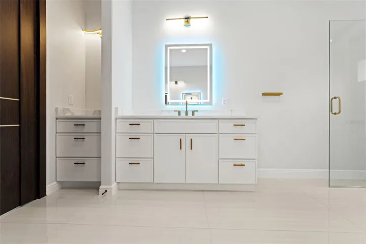 The primary suite offers a peaceful retreat overlooking the resort-style pool and is paired with a must-see primary bathroom where the builder’s attention to detail truly shines. Enjoy His & Hers walk-in closets, a dedicated cosmetic vanity space, unique copper basins, a Venetian soaking tub, elegant interactive mirrors, and a stunning Italian porcelain tile shower. The spa-inspired shower features two separate glass entry doors and six total sprayers, including two rain showers and a standard shower head on each side designed for everyday relaxation. All bedrooms feature spacious walk-in closets, providing excellent storage and flexibility. The fifth bedroom is an oversized standout space with three beautiful windows and pool views, along with an oversized walk-in closet. Ideal as a gym, playroom, media room, or bonus living area, this space adapts easily to changing lifestyle needs.