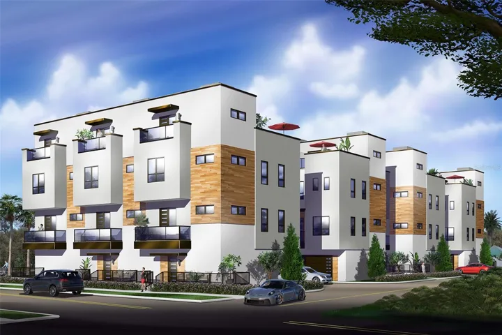 Currently a two-story office building with industrial 2 car garage on 0.17 acre lot with option to purchase two contiguous lots (0.17 acres each in size) for a total of 0.54 acres, all zoned CRT-1. This is also a unique turnkey investor opportunity in sought-after St. Petersburg along a well-traveled corridor, complete with plans, renderings, and permitting to construct a total of 12 open-concept townhomes. The two contiguous lots are cleared and graded. The existing building, which can be sold separately from the two lots, is perfectly suited for companies with trucks and/or heavy equipment, such as HVAC, plumbing, or general contracting firms in need of office space, fenced outdoor storage, indoor storage areas, and high-ceiling garage bays. Its upstairs bonus space can support a multitude of venue purposes. There are a total four (4) office spaces and two (2) bathrooms plus lobby/reception area. The alley running behind both the building and the lots can accommodate a variety of uses for either the office or the residences. A key advantage of this townhome project is the opportunity to retain the services of the contractor/developer/sellers for construction of the townhome project. Approved plans—which would require all three lots and the demolition of the existing building—are for three-story, three-bedroom, two-full-bath, and two-half-bath townhomes with optional private elevators that traverse all floors, from the stylish rooftop terraces to the gourmet kitchens and down to the two-car garages. Situated along a picturesque bike trail, this ideal parcel is one block from the famed Sunset Park, the Treasure Island Causeway, and unparalleled beaches to the west, while just minutes from the iconic St. Pete Pier, restaurants, and retail to the east. Both vacant lots are also being advertised separately under MLS #’s TB8470017 and TB8470032.