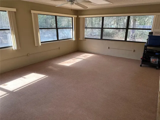 outdoor shower, generous size Florida room, living room, dining room, family room with a wood burning