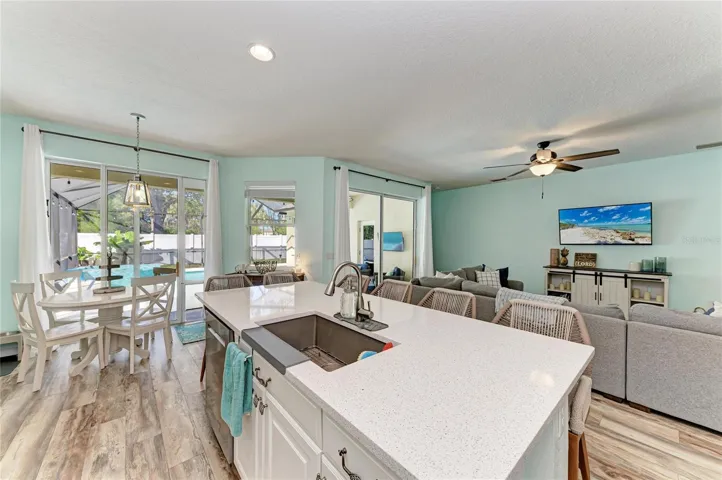 The heart of this home is its expansive open floor plan, designed for modern living and entertaining. It boasts an updated kitchen equipped with sleek appliances, a convenient dining area, and a spacious pantry, making it a perfect setting for family gatherings.