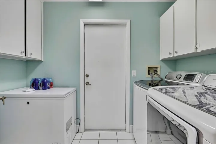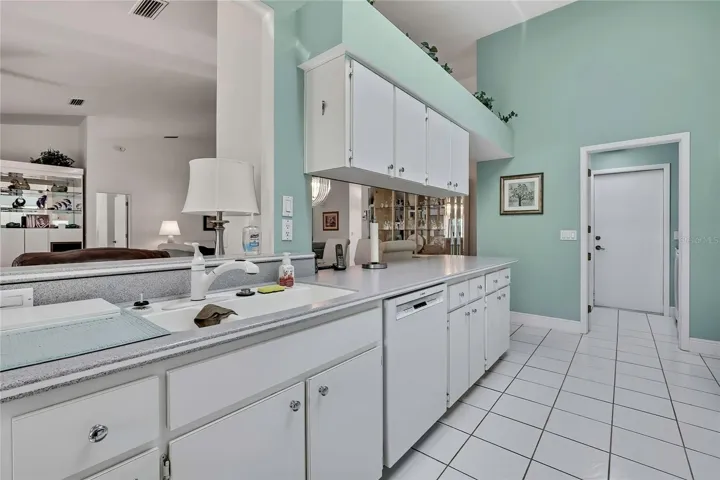 Additional features include new heavy-gauge gutters, windows replaced in 2016, a garage door replaced in 2016, HVAC replaced in 2015, and a roof installed in 2010. The screened garage includes a painted floor, built-in cabinets, and pull-down attic stairs. This home also includes a golf cart with brand-new lithium batteries (10-year lifespan). ***DOG FRIENDLY VILLAGE-ONE DOG***