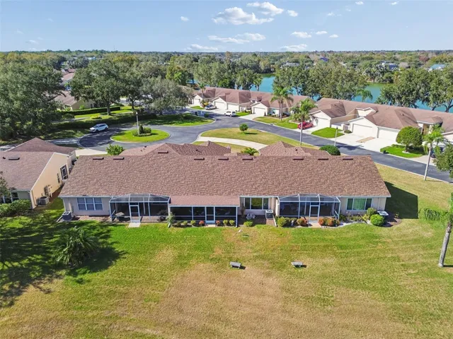 Stunning end unit lakefront villa in beautiful imperial lakes. This is your rare opportunity to own this immaculate home with a screened in entrance and paved outside porch. The immaculate exterior definitely reflects the interior. As you enter, you’ll be greeted by a bright open floor plan with a multi-purpose room to your left, third bedroom (no closet) or office, to the right is the open and airy living dining room area with lovely views of the lake. Open to the living area we have the kitchen with a large breakfast bar for those quick snacks also plenty of space for a dinette table. The upgraded kitchen with upgraded countertops and appliances are an extra bonus. Off the kitchen the sliding doors open to the covered patio which is paved and has a beautiful view of the lake. What a peaceful place for your morning coffee. From the kitchen you have easy access to the master suite which is privately located on one side of the house, large bedroom with “his” and “hers” closets open up to the well-appointed bathroom, beautiful walk-in shower, double vanities and solid surface countertops. At the front of the home is the second bedroom with a large walk-in closet. Also off the hallway is the indoor laundry room which has access to the double garage. With no carpet in the whole house, it makes it very convenient if you have pets. This home also offers various recent upgrades the appliances are three years old the patio was re-screened 2 years ago and the roof was replaced two years ago. This lovely home also has a smart app door opener. The only thing that is missing is you make your appointment today.