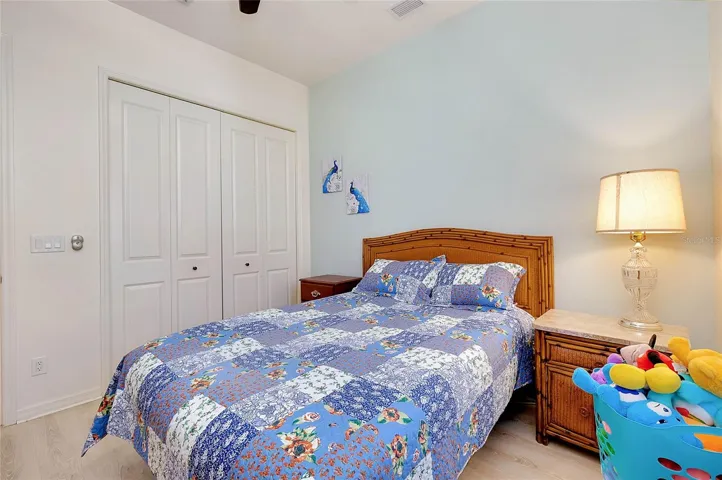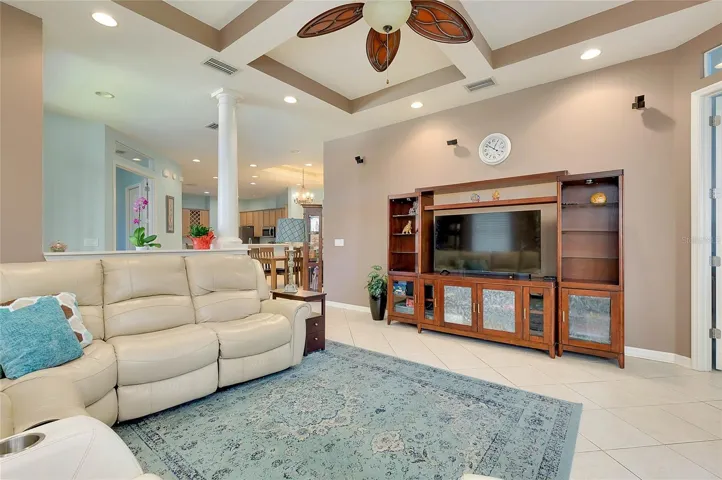 This beautifully appointed 4-bedroom villa is located in the highly sought-after Palma Sola Trace community, just under four miles from the area’s stunning Gulf beaches. Thoughtfully designed with both style and comfort in mind, the home features soaring ceilings, 8-foot doors, Andersen impact-resistant windows, tray ceilings, crown molding, French doors, surround sound, and a screened lanai—perfect for embracing Florida’s indoor-outdoor lifestyle. The spacious, open floor plan offers excellent bedroom separation, highlighted by a private split primary suite measuring 17’ x 13’, complete with a walk-in closet and dual vanities. An oversized laundry room adds everyday convenience with upper and lower cabinetry, a utility sink, and a luggage shelf. The two-car garage is equipped with overhead storage racks for added organization. The spacious open floor plan and generously sized rooms create a sense of space that lives much larger than its nearly 2,000 square feet. Situated on a premium homesite overlooking a tranquil pond, this villa enjoys additional privacy and space between neighboring homes and is just a short walk to the community clubhouse. Palma Sola Trace is a maintenance-free community, with lawn and landscape care included, as well as a new roof and exterior paint completed last year. Residents enjoy resort-style amenities, including a spacious clubhouse with gathering room and catering kitchen, fitness center, heated pool, covered patio, sun deck, playground, and scenic walking paths. Ideally located near shopping, dining, and everyday conveniences, this home is also just minutes from the sugar-sand beaches of Anna Maria Island—offering the best of coastal Florida living.