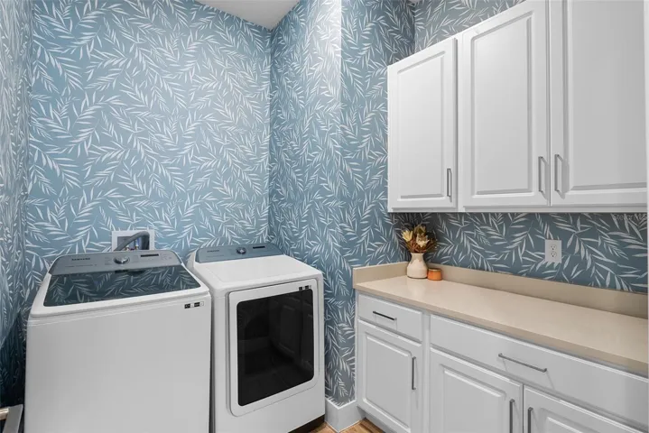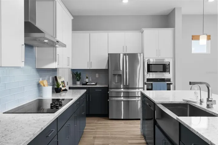 The fully fenced yard offers plenty of green space for pets and play, while inside, the home opens to a bright and airy open-concept layout anchored by a true chef’s kitchen—complete with high-end finishes, ample cabinetry, and an ideal flow into the living and dining areas. This four-bedroom home showcases gorgeous wood-look tile flooring, custom built-in closets, designer wallpaper accents, and refined finishes throughout, creating a space that feels both sophisticated and welcoming.