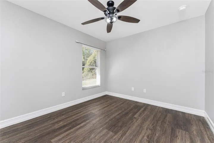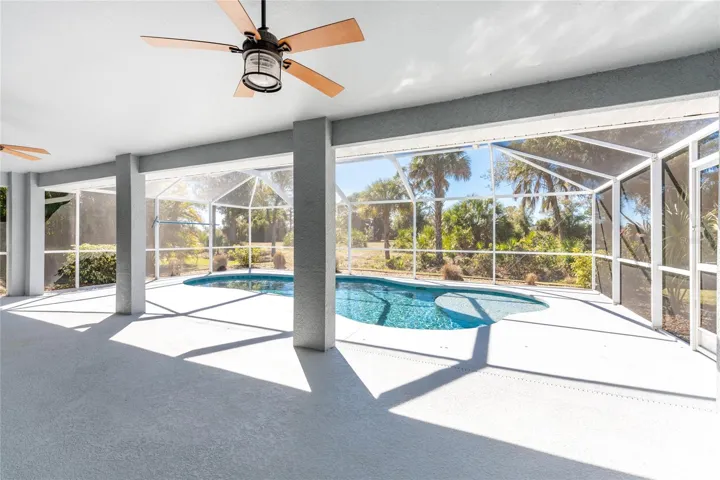 Don’t miss this exceptional opportunity to own this modern southwest-facing pool home in Rotonda West. This beautifully designed residence offers four bedrooms, two bathrooms, a dedicated office, a formal dining room, and a two-car garage. From the moment you enter, the home showcases meticulous attention to detail and high-quality custom finishes throughout. The open-concept kitchen is bright and inviting, featuring a large island with granite countertop, white solid-wood soft close cabinetry, a subway tile backsplash, stainless steel whirlpool appliances, hood vent, a pantry, luxury vinyl plank flooring, crown molding, and modern lighting. Adjacent to the kitchen, the formal dining room offers crown molding, modern lighting, luxury vinyl plank flooring, and a striking shiplap accent wall—perfect for hosting gatherings. The spacious living room includes crown molding, a modern ceiling fan, luxury vinyl plank flooring, and sliding glass doors that open to the screened lanai and pool area, creating seamless indoor-outdoor living. The primary suite is a private retreat with tranquil pool views, abundant natural light, a generous walk-in closet with custom built-ins and a sliding barn door, and an elegant en-suite bathroom. The primary bathroom features a tiled walk-in shower with glass enclosure, a freestanding soaking tub, double vanity, modern lighting, and luxury vinyl plank flooring. The secondary bedrooms are well-appointed with luxury vinyl plank flooring, closets, and modern ceiling fans. The second bathroom offers a tiled walk-in shower with glass enclosure, updated lighting, and convenient access to the pool area. The office/flex room provides versatility and includes crown molding, luxury vinyl plank flooring, a modern ceiling fan, and a large sliding barn door. Additional interior features include an updated laundry room with built-in cabinetry, butcher-block countertop, and washer and dryer. The two-car garage is finished with an epoxy floor and a LiftMaster smart garage door opener. The outdoor living space is truly impressive. The expansive covered lanai features two ceiling fans, an outdoor bar with butcher-block countertop, and stunning views of the Pebble Tec pool and adjacent park. The pool is equipped with an electric heater and surrounded by tropical landscaping and decorative concrete curbing. The roof was replaced in 2023 for added peace of mind. Located in an X flood zone, flood insurance is not required. Rotonda West is a desirable deed-restricted community with low HOA fees, offering parks, walking and biking trails, tennis courts, a community center, and numerous golf courses. The home is also just minutes from Gulf beaches, boating, fishing, dining, shopping, and a wide variety of outdoor activities.This exceptional property offers comfort, style, and an unbeatable location—an opportunity not to be missed.