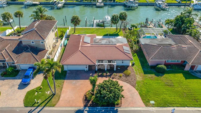 Step into this meticulously updated and energy efficient waterfront retreat in the highly desirable Broadwater neighborhood and be wowed by the incredible water-views and amazing natural light all around. Every detail has been thoughtfully updated to offer a seamless blend of modern comfort and serene water views.. With 80 feet of pristine water frontage on a tranquil deep-water canal, private dock with two boat lifts (10K & 13K lbs) with direct access to Boca Ciega Bay, intercoastal waterway and the Gulf , this home is a haven for boating, fishing, watersports, and salt life enthusiasts alike. Open-concept living spaces with large sliding pocket windows and doors opening onto a beautiful pool with a large open outdoor deck and tropical landscaping that transforms the space into a seamless indoor-outdoor living experience with abundant natural light and water vistas. Full kitchen renovation 2025 with brand new high-end appliances, gorgeous custom-made cabinetry, and exquisite granite countertops makes this the perfect place to cook up a gourmet meal. Spa-like bathrooms renovated 2025 featuring contemporary finishes with lavish tilework and new fixtures. Beautiful large primary suite with walk-in closet and serene water and pool views. Large bedrooms with lots of room for family or guests. Oversized two-car garage plus a large circular driveway offering abundant parking for guests and convenience. Exterior and interior of home newly painted in 2025, seawall replaced and elevated in 2023, and solar panels installed in 2018. Come live the tropical Florida lifestyle in newly renovated home nestled in a quiet neighborhood minutes from the beaches, shopping, restaurants, marinas, and vibrant arts and culture of downtown StPetersburg, and easy access to I-275.
