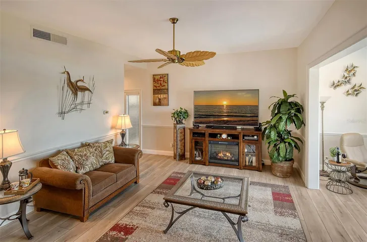 LOCATION, LOCATION, LOCATION! Nestled within the highly desirable Peppertree Bay community, this exceptional first-floor island retreat offers breathtaking views and a serene coastal atmosphere. Designed with elevated ceilings and a well-appointed floor plan, this 2-bedroom, 2-bath residence lives more like a private home than a condominium. Great elevation with NO HURRICANE DAMAGE and NEW IMPACT WINDOWS providing additional protection and peace of mind. Upon entry, you are immediately welcomed by floor-to-ceiling windows that flood the space with natural light and showcase stunning views throughout the main living areas. The spacious open concept layout seamlessly connects the living area to the Florida Room, where sliding doors open to a paved patio, just perfect for entertaining, relaxing with friends, or enjoying a quiet evening cocktail. A defined dining area continues to enjoy picturesque views, while the custom kitchen will delight any home chef with abundant cabinetry, generous workspace, granite countertops, mosaic tile backsplash, and stainless-steel appliances. The spacious primary suite features multiple closets and a private en-suite bath, while a well-appointed guest bedroom and second full bath provide comfort and privacy for visiting family and friends. A PRIVATE GARAGE, an exceptional and highly sought-after feature on Siesta Key, adds tremendous value and convenience. Peppertree Bay is an amenity-rich community offering two heated pools, a fishing pier, BBQ and picnic areas, tennis courts, a fitness center, and two clubhouses with fully equipped kitchens and regular social events. Enjoy the closeness of Siesta Key Village for live music, shopping, and dining, or take advantage of easy on-and-off island access to all that Sarasota has to offer. Offered turnkey furnished and move-in ready, this stunning residence is ideal as a full-time home or a luxurious vacation retreat. Just bring your toothbrush and start living the Florida dream.