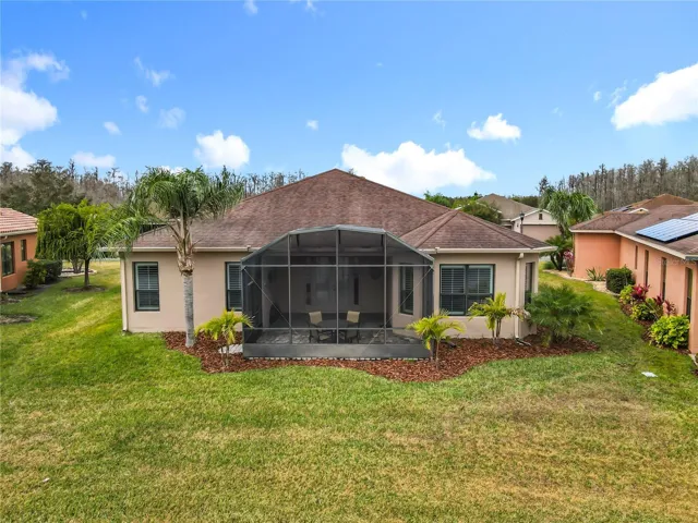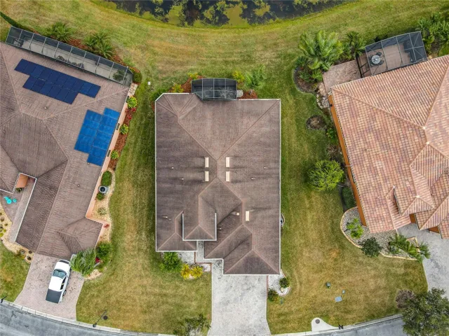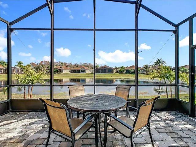 Step inside to discover 2,352 sq. ft. of luxurious interior space (3,180 sq. ft. total area) with an impeccably designed open-concept layout, exuding sophistication from the very first glance. A leaded glass front door, upgraded landscaping with curbing, and architectural stone accents establish an unmistakably upscale welcome. Recently painted for a fresh, refined look. Step into a world of refined luxury. Every detail has been thoughtfully curated to elevate comfort, style, and everyday living. The home’s crown jewel is its PANORAMIC WATERVIEW, enjoyed from an extended, covered, and screened lanai, your private sanctuary. Additional highlights include NEW WATER SOFTENER & FILTRATION SYSTEM, ***TESLA CHARGER***, architectural stone accents, recessed lighting, ten-foot ceilings with crown molding, and 8’ sliding doors seamlessly blend indoor and outdoor living. Plantation shutters and upgraded interior trim add timeless elegance throughout.