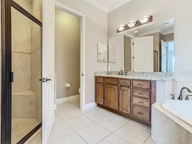 At the heart of the home lies the CHEF’S DREAM GOURMET KITCHEN, highlighting GRANITE countertops, a designer backsplash, upgraded 42” SOLID WOOD cabinetry with pull-out drawers, under-cabinet lighting, a Lazy Susan, and a freestanding granite island. A charming breakfast nook and a spacious custom pantry complete this culinary haven. Recessed and pendant lighting over the BREAKFAST BAR. TOP-OF-THE-LINE STAINLESS STEEL appliances, including a new Whirlpool dishwasher, LG ThinQ refrigerator, and LG ThinQ microwave. Both PRIMARY SUITES brings luxurious comfort, one with bay windows, and each includes custom his-and-her walk-in closets and spa-inspired en-suite bathrooms with dual sinks, UPGRADED counters, and seamless glass walk-in showers. One suite also features a sumptuous soaking tub. The guest bedroom includes a large built-in closet, ideal for an office, library, or craft room. Rich HARDWOOD flooring enhances the main living areas and bedrooms. Designer accent walls add warmth and character. The inside laundry room offers custom cabinetry for added convenience. The extended two-car garage, with epoxy flooring, a dedicated golf cart bay adds practicality to the home’s luxury. Located within Solivita’s Gated Golf Community, residents enjoy world-class amenities: Two PGA 18-hole Championship Golf courses, Two state-of-the-art amenity centers, Fourteen pools, On-site restaurants, Tennis courts, Playground, Dog park. Over 200 clubs and activities Conveniently close to supermarkets, dining, pharmacies, a hospital, the new expressway, major attractions (just 25 minutes away), and the SunRail Poinciana Station. For the full experience, consider scheduling a virtual video tour or arranging a private in-person showing. A personal visit reveals the true scale, flow, and serenity of this extraordinary home.