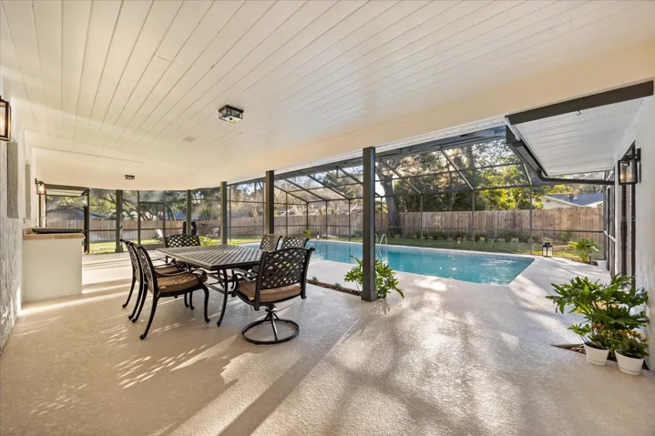 Recent improvements add significant value and peace of mind, including New Roof, new insulation, full-repipe. Fresh interior and exterior paint, upgraded engineered wood flooring in all bedrooms, plantation shutters, enhanced garage finishes with upgraded lighting and electrical, and extensive exterior improvements including landscaping upgrades and pool deck restoration. Outdoor living is elevated with a private pool area and added outdoor kitchen space ideal for entertaining.