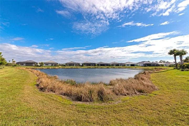 Welcome to this beautifully appointed 3 bedroom 3 bath Mystique model home located ON THE WATER in the highly desirable Beachwalk by Manasota Key community. ONLY 2.5 MILES TO THE BEACH. This thoughtfully designed home offers a bright, open-concept layout that blends comfort, style, and everyday functionality ideal for embracing the Florida lifestyle. The spacious kitchen serves as the heart of the home, featuring 42′ white shaker cabinets, Quartz countertops, center island and modern stainless steel appliances, all flowing seamlessly into the main living and dining areas. The 8 FOOT DOORS and Natural light enhances the airy feel, creating a warm and inviting atmosphere throughout. DECORATVE WALL MOLDINGS add to the chic beachy vibe. IMPACT GLASS WINDOWS & DOORS. The private primary suite provides a relaxing retreat with a well-appointed bathroom and walk-in closet, while the additional bedrooms and flex living space offer versatility for guests or a home office. Designed with indoor/outdoor living in mind, EXIT THE ZERO CORNER DOORS TO THE EXTENDED LANAI is an inviting outdoor space perfect for enjoying morning coffee, evening sunsets, or entertaining friends and family. Enjoy a resort style lifestyle which includes the ON SITE HIGH TIDE TIKI BAR, the Waterline upscale restaurant (opening in 2026), 21 sports courts for PICKLEBALL, tennis, and bocce ball, a resort style pool with beach entry and attached lap pool, amenities center, Cafe’, fitness center, boardwalk, Veterans memorial park, community garden, dog park, and miles of trails. The full time activity directors ensure a vibrant and engaging social calendar. Conveniently located near some of Florida’s most beautiful beaches, boating, exceptional dining, shopping, schools, and endless outdoor recreation. This home offers the perfect blend of luxury, comfort, and location, so don’t miss your opportunity to live in Paradise!