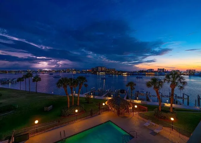 *AVAIL NOW* 270-DEGREE VIEWS!!*END UNIT*GORGEOUS VIEWS FROM every WINDOW in this 7th floor LARGE 2bdrm 2bath Fully RENOVATED condo. This NEWLY Furnished and fully equipped unit located on Island Estates of Clearwater Beach offers you SUNSETS and SUNRISES each day. Be the first to enjoy all the NEW! (all new hurricane rated windows, Sliders & Remote Blinds. Master bedroom has KING SIZE REMOTE ADJUSTABLE BED, double faucets, walk-in closet, Wall mounted TV and Sliding doors to Balcony with views of the intracoastal and CLEARWATER BEACH. Guest room En-suite has a Queen size remote adjustable bed ALSO OFFERING WATEERVIEWS of the intracoastal waterway and its own full bathroom. Large Kitchen has an abundance of cabinets, an eat-in area and full-size Washer Dryer closet. Dining area combined with the Large Living room offers Window views galore with REMOTE CONTROLLED SOLAR SHADES, a Large swivel wall mounted TV with Surround sound, shiplap on the wall, and hurricane shutters. Want to sit outside.. sliding doors from LR or Master Bdrm lead to the Balcony to enjoy your views anytime of the day. Ceiling fans throughout. This unit offers 270-degree views! assigned PARKING #71, Heated Pool, tiki hut and BBQ grills for your everyday use. Minimum Lease period is 7 months. First month. Security deposit, last month. renters’ insurance required.