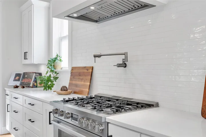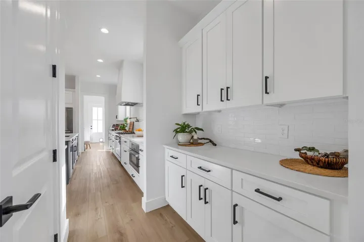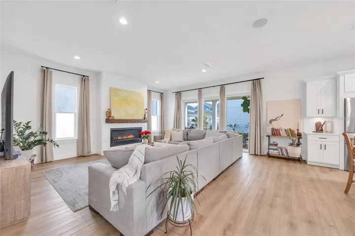 Step into a custom residence where calmness, grace, and thoughtful design greet you from the moment you arrive. In the quiet part of community, overlooking peaceful pond views, this luxury home features an open, airy floor plan filled with natural light, upscale laminate planks throughout, large lot. The gourmet kitchen is a true centerpiece here, offering a commercial-grade hood ideal for entertaining, gas stove, Bosch appliances, pot filler, walk-in pantry, and an appliance garage. The living area flows seamlessly to the outdoors through fully retractable sliding glass doors, complemented by surround sound and custom-tinted windows for comfort and privacy. With 4 bedrooms and 3 full baths—including one with direct patio access—the layout is designed for both convenience and flexibility. One bedroom is located on the main level, while upstairs you’ll find a Jack-and-Jill setup and a spacious primary suite featuring a tray ceiling, spotlight accents, and a spa-inspired bath with walk-in shower, separate soaking tub, and a stunning built-in closet with natural light. An exceptional bonus is the private in-law suite above the garage, complete with its own kitchen, living area, bedroom, and stackable washer/dryer—perfect for guests or multi-generational living. The outdoor oasis is a destination of its own, surrounded by bamboo, olive, lime, and persimmon trees. The covered patio invites year-round enjoyment, and the fully fenced property offers privacy and space to unwind. From your backyard, you can even watch Space Shuttle launches light up the sky. Located in the highly desirable golf cart district, this home places you just a 2-minute walk from the West Orange Trail and only 3 miles from historic Downtown Winter Garden. Unbeatable location, unmatched lifestyle. Schedule your private showing today.