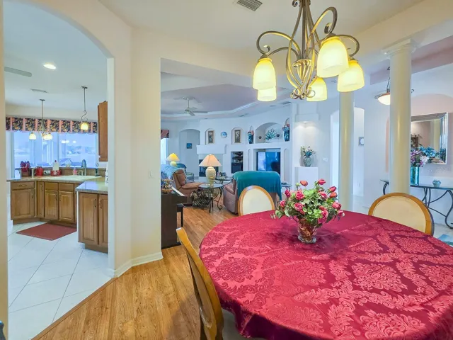 This is a gorgeous lakefront beauty in Hidden Lakes – a private subdivision with sidewalks and street lighting in Palm Coast, FL – minutes to the beach, shopping, hospital and professional services. 3 bedrooms, 2 bathrooms, large great room with a fireplace, plant shelves, inserts for large screen TV and stereo system, 10′ ceilings with coffered 11′ ceiling – foyer and dining room also boast well designed 11′ coffered ceilings. Your driveway to your extended side-entry garage is brick-paved and upon entering this home, you’ll be greeted by an open foyer with well-appointed columns and an expansive view of the lake – a view that you capture from the great room, kitchen, primary bedroom and, of course, the brick-paved lanai. Nothing matches having your morning coffee while enjoying the sun rising in the east over the lake – a view perfectly suited for a postcard. Schedule a private showing today.