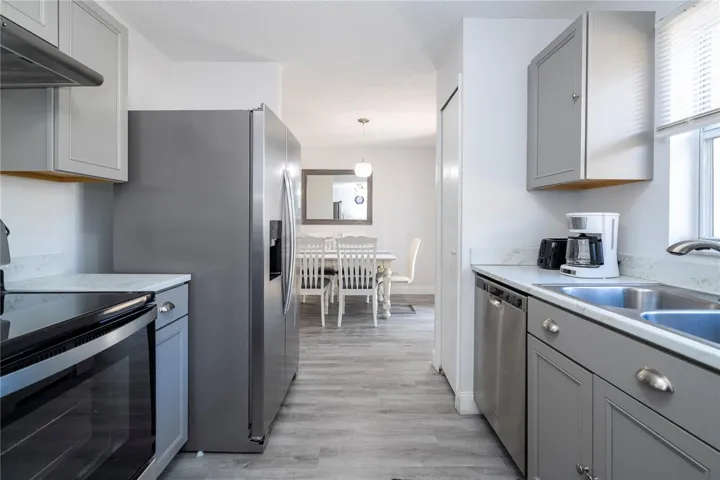 The property has vinyl flooring throughout, ceiling fans, and a functional layout with an integrated living and dining room, offering comfort and practicality. Sliding doors in the living room provide direct access to the outdoor area, where you’ll find a private indoor pool and ample space for leisure and socializing.