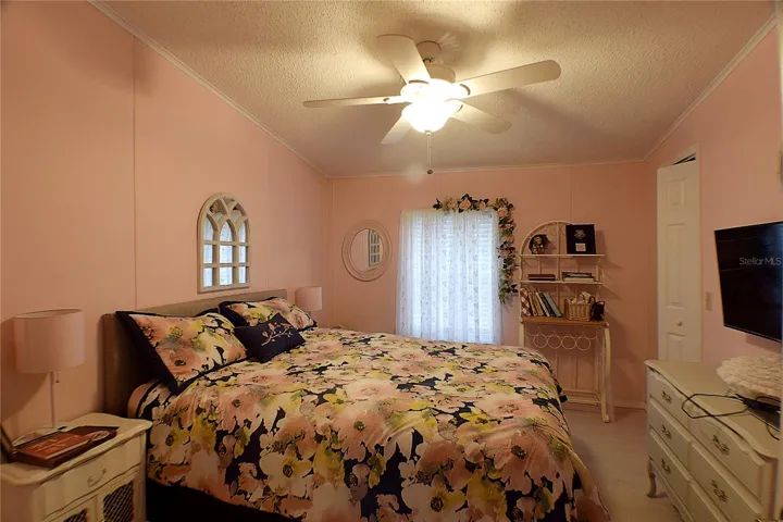 Welcome to your new home! Everything was redone within the last 6 years! New Vinyl Plank Flooring 2024, Roof 2024, New Skylights 2024, Air Conditioner 2019, New Appliances 2019, Windows 2023, Exterior Doors 2023, Updated Plumbing in 2019. The enclosed front porch welcomes you into the home with tile flooring. Enter the double doors to the expansive living room with new vinyl plank floors. The Beautiful kitchen features Quartz countertops with newer white cabinet doors and the newer appliances. Kitchen offers easy access to the interior laundry and is open to the dining area. Hall leads to the 2 bedrooms and 2 bathrooms. Primary ensuite features a walk-in shower redone in 2023 and dual sinks. The home also features a shed with easy access to the backyard and a screened patio. Located in the 55+ Community of Spanish Trails West with low HOA dues of $142/month that includes lawn, trash, cable, and internet. HOA Amenities include a heated swimming pool, tennis/pickleball court, shuffleboard courts, and a clubhouse. Come see this beauty today!
