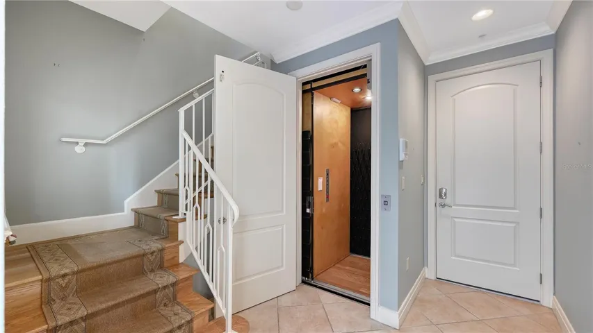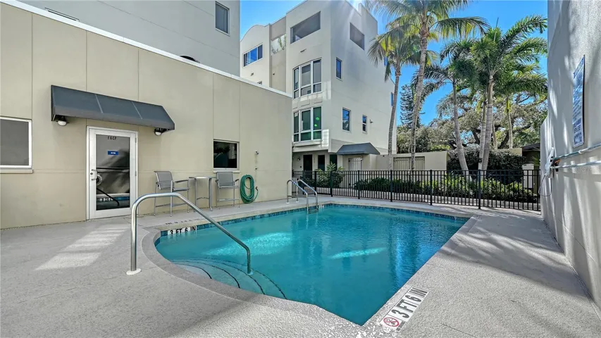 In DOWNTOWN SARASOTA – 2 BLOCKS TO EVERYTHING! This rarely available, 3bd/3.5 bath one-of-a-kind townhouse with ELEVATOR & 2-CAR GARAGE. It boasts 2,649 sq ft of Sarasota luxury with a total area 2,745 sq ft. Enjoy downtown city views from this custom FURNISHED 4-story move in condition townhouse. The first level hosts an attached two-car garage with plenty of overhead storage which leads into the foyer large laundry room. Guests are presented with the option of either riding your private elevator or accessing the wooden staircase as they make their way towards the 2nd level. The 2nd floor has a large open gourmet kitchen w/breakfast bar. Complemented by beautiful granite countertops & stainless-steel appliances, family room, formal dining area and half bathroom. The third level is reserved for the alluring master suite and the 2nd bedroom, both with walk-in closets and private bathrooms. Continuing up the elevator or winding spiral staircase to the 4th and final level, behold a spacious MOTHER-IN-LAW SUITE or Bonus room with kitchenette and outdoor space for BB-Q, sunning or plants. The floor to ceiling windows invites guests out to the magnificent city views. Amenities include, gated community, heated swimming pool/spa, gym with top-of-the-line equipment. Main Street is next door to indulge in the area’s finest dining, shopping or catch a show. Don’t miss the opportunity to live in the heart of Sarasota’s vibrant downtown!